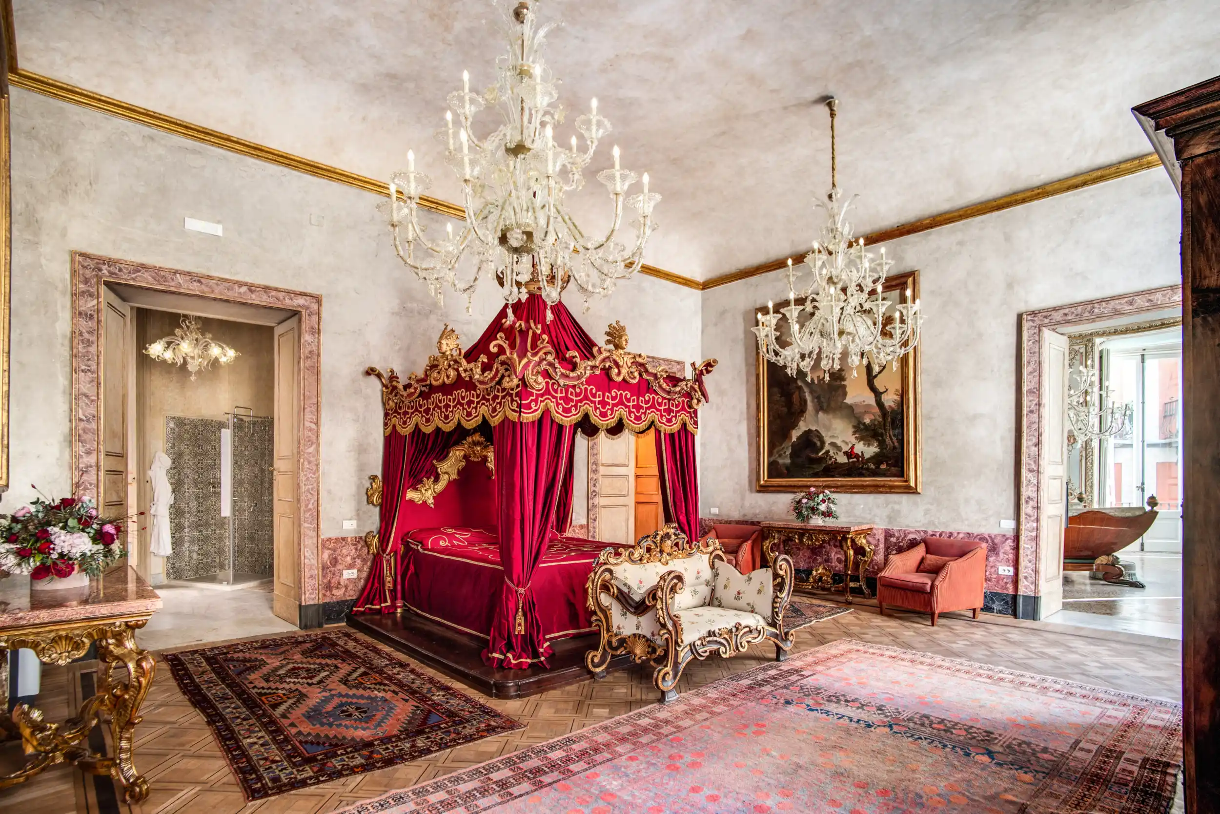 Oltre alle meravigliose camere da letto il Palazzo presenta delle incantevoli aree comuni, finemente e artisticamente arredate. In queste aree potrete rilassarvi leggendo uno dei numerosi testi di arte e architettura messi a vostra disposizione nella sala tea.